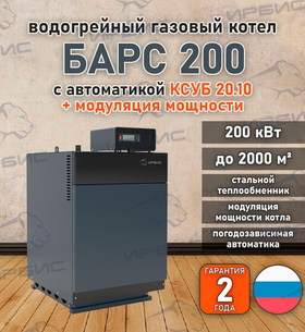 Отопительные газовые котлы «Барс 200» с КСУБ 20.10 и модуляцией мощности используются, как правило, для помещений до 2000 м².